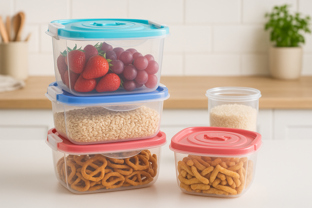 Usar potes herméticos para armazenar frutas, sobras e preparações da semana evita desperdícios e facilita as refeições do dia a dia.