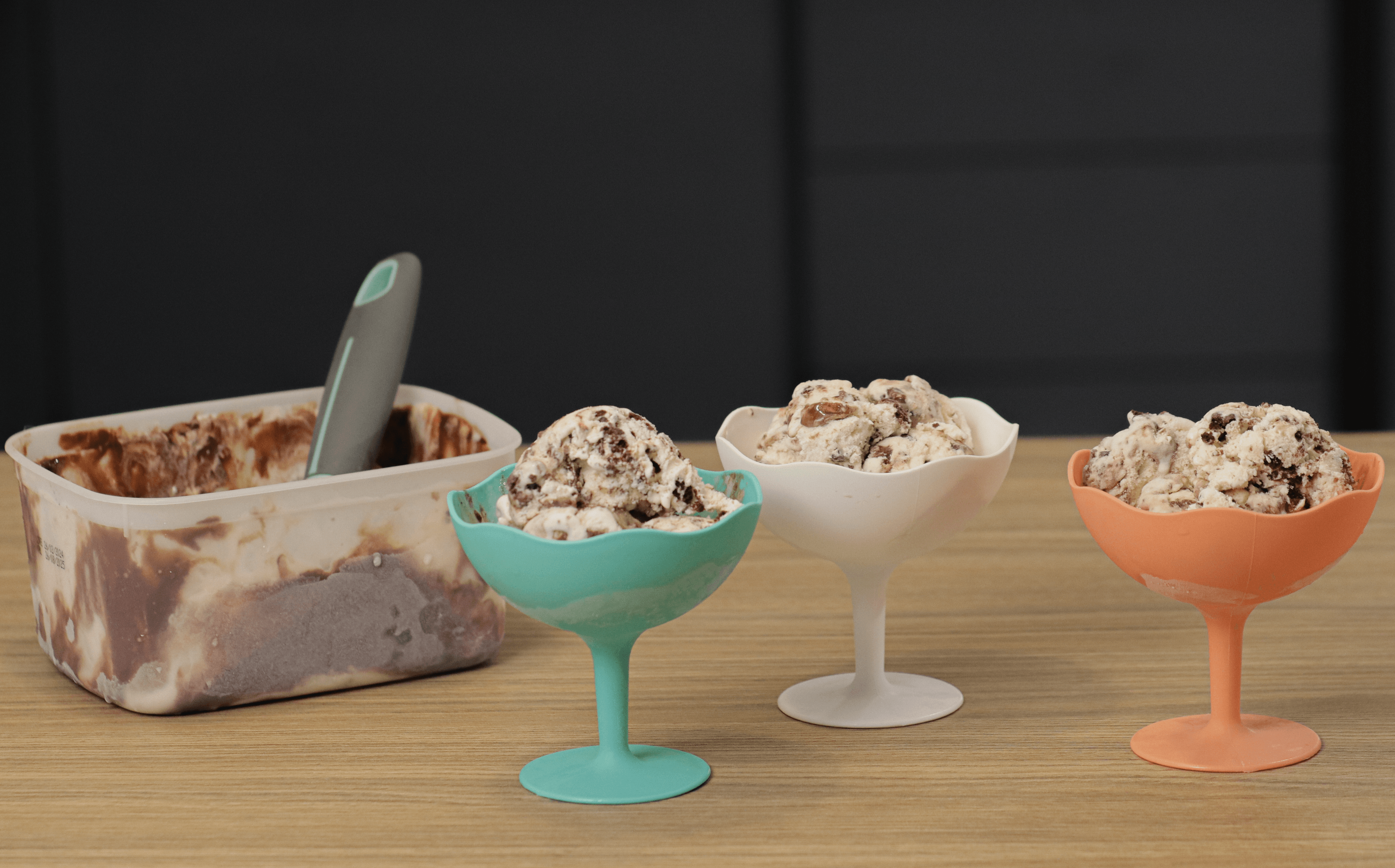 Entre as novidades, temos a taça de sobremesa, ideal para quem aprecia servir sorvetes e outras sobremesas com elegância e segurança; disponível em três cores, essa taça é resistente a quedas e conta com um visual moderno.